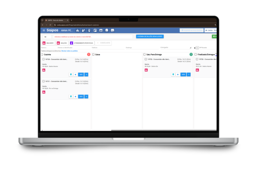 “Na Saipos, a usabilidade, principalmente no formato de Kanban dos pedidos, facilita muito. O Kanban traz uma facilidade enorme, especialmente no delivery, porque você sabe exatamente quantos pedidos existem, onde cada um está e qual a prioridade (se está atrasado na cozinha, se saiu para entrega, etc). Você tem tudo em uma única tela”, complementa.